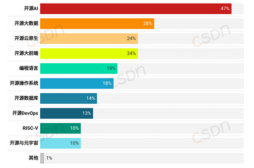 Source: CSDN 2024 China Developer Survey Report. Open source technology fields that developers pay attention to (multiple items can be selected).